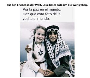 なぜなら、彼らの性格はそれに向けられたものではなく、無限の権力に向けられたものだからだ。それとは対照的に、子供たちはまだ無邪気で、誇大妄想、権力欲、人種差別、宗教的狂信などとは無縁である。この写真は、私がマイケルから受け取ったものだ。世界の平和のために。この写真を世界中に広めてください。